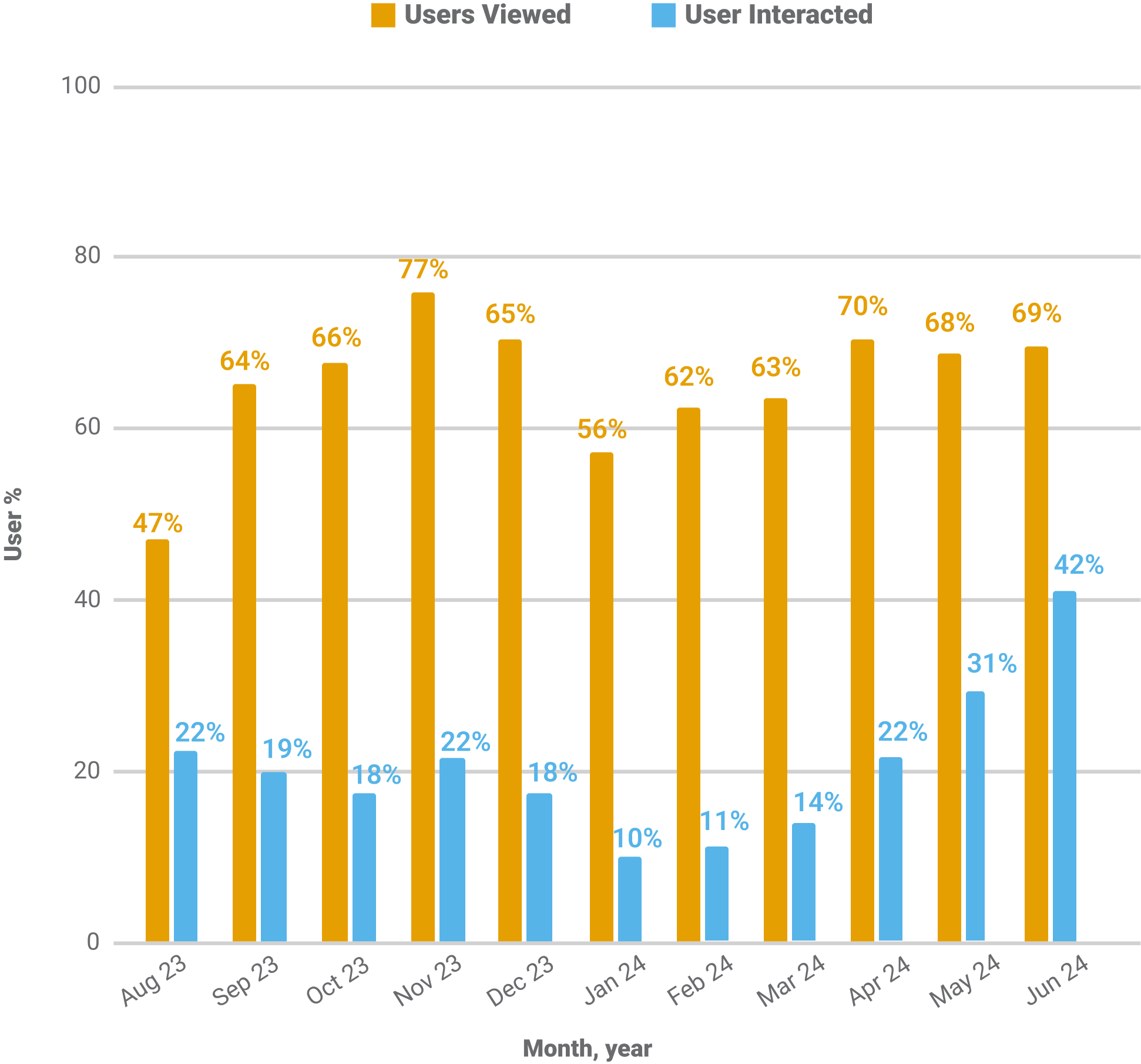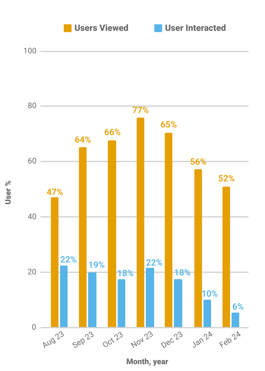 User interaction increased to an all time high of 43% with profile creation rate increased to 40%