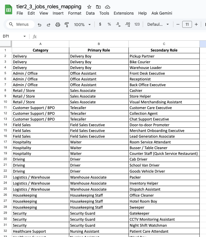 Seekers are better matched to roles outside their primary category (e.g., an office boy under ‘Admin’ may also fit well in ‘Delivery’ roles).