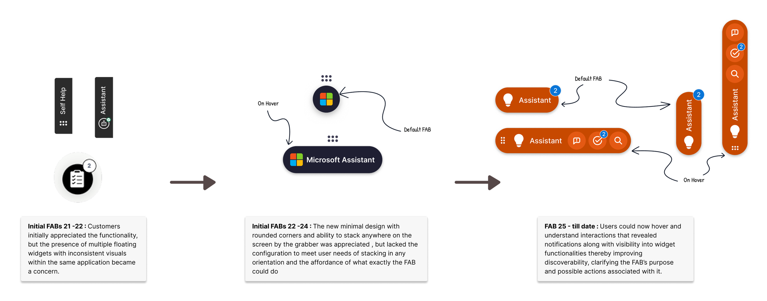 The entry point evolved into a refined FAB, shaped through usability testing and continuous customer feedback. It needed to stay recognizable while adapting to different host applications.
