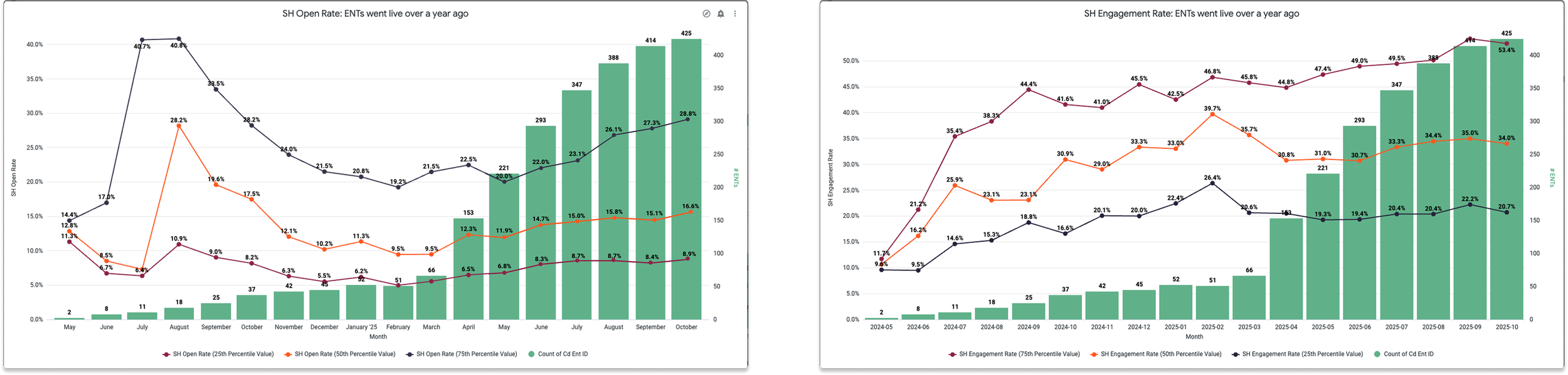 A lightweight, contextual layer embedded directly into the workflow, driving an increase to 28% open rates and 53.4% engagement of the combined experience