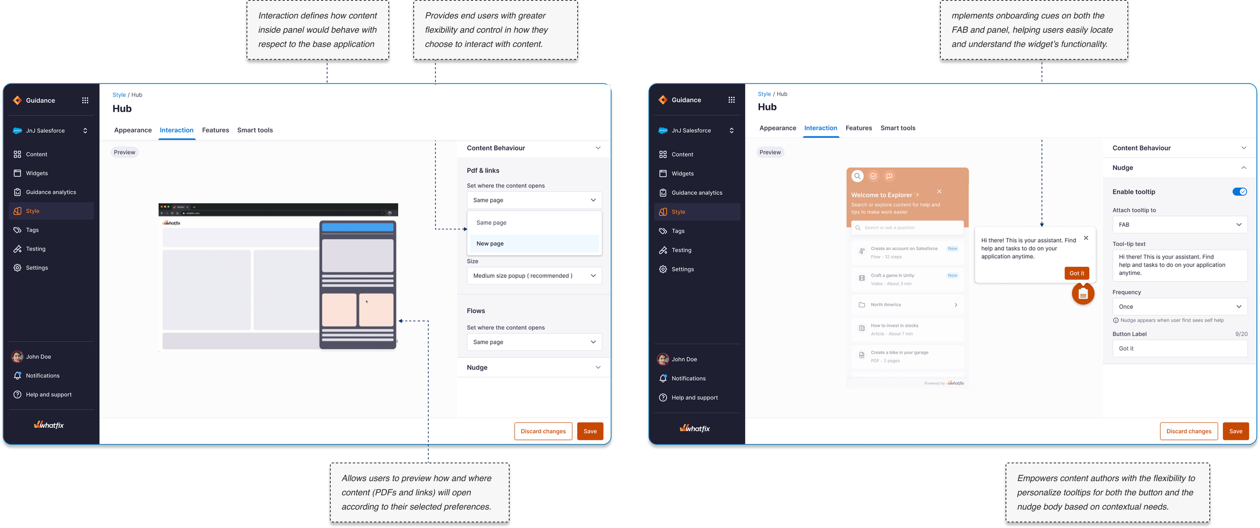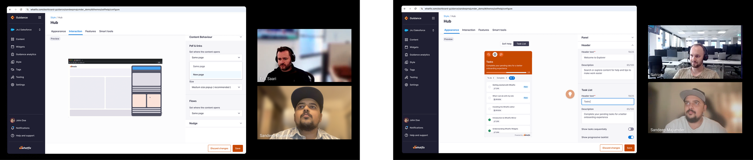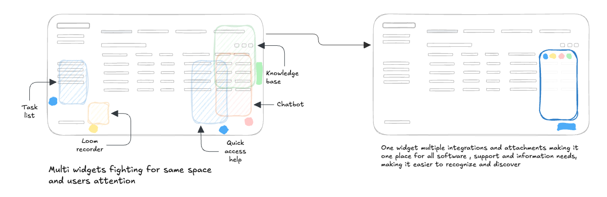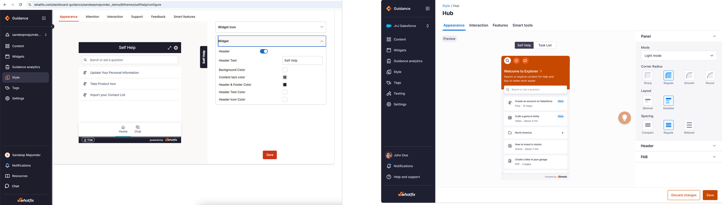 Stakeholders were protective of their application space. "We don't want another Whatfix icon in production." The widgets needed to feel embedded, not appended.