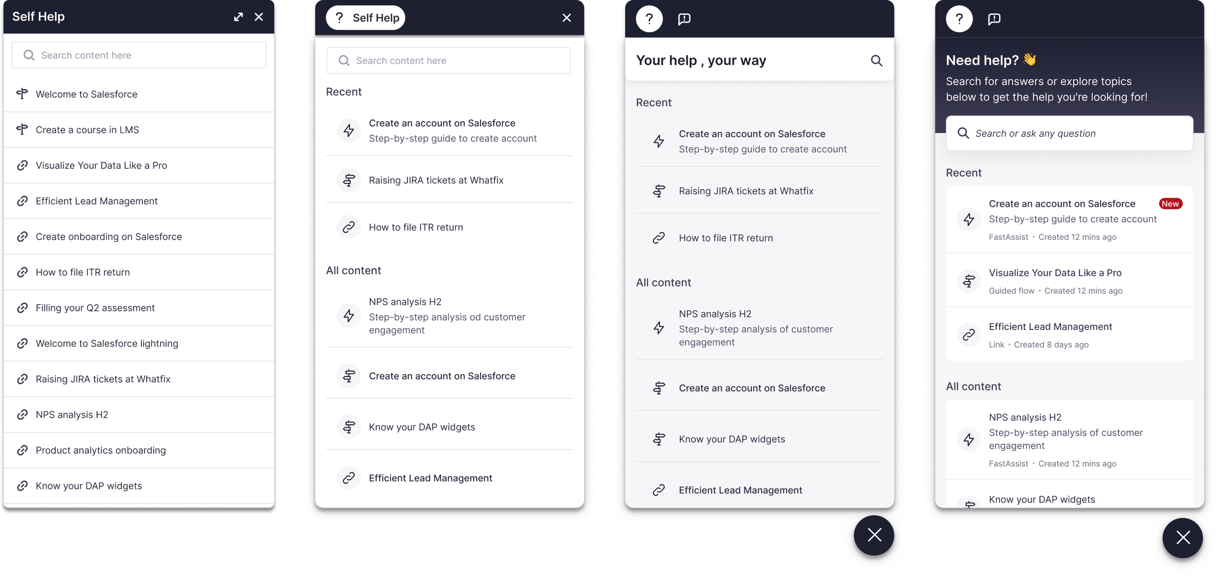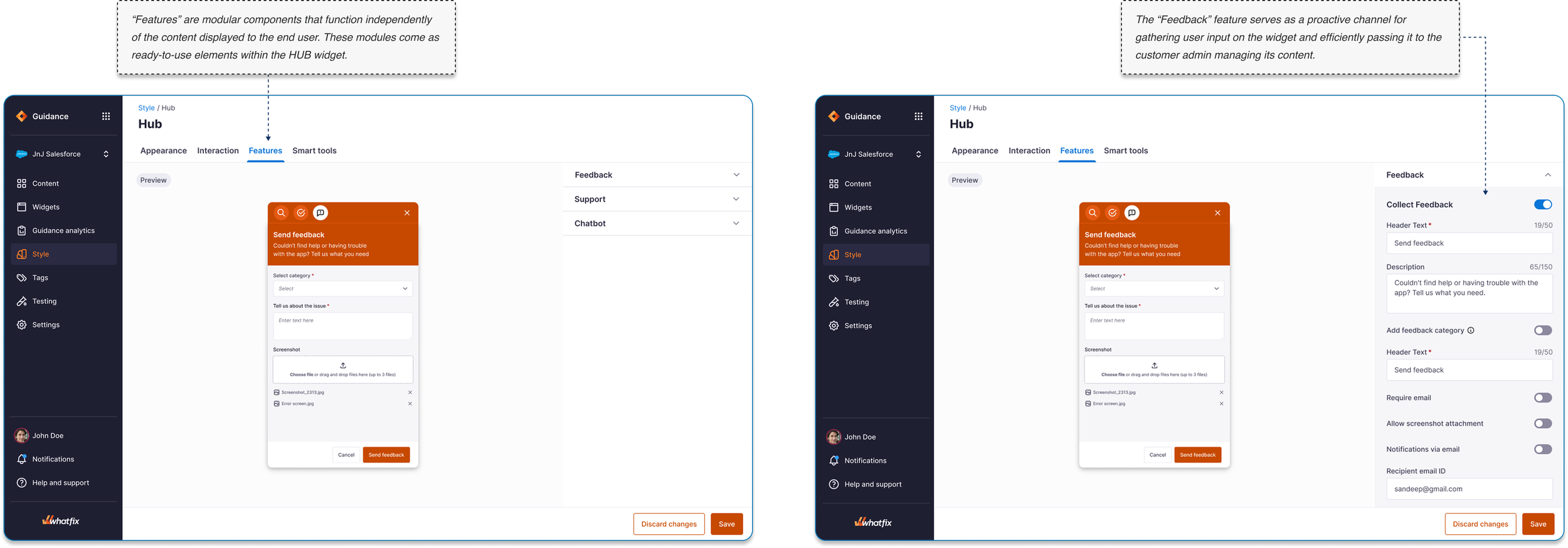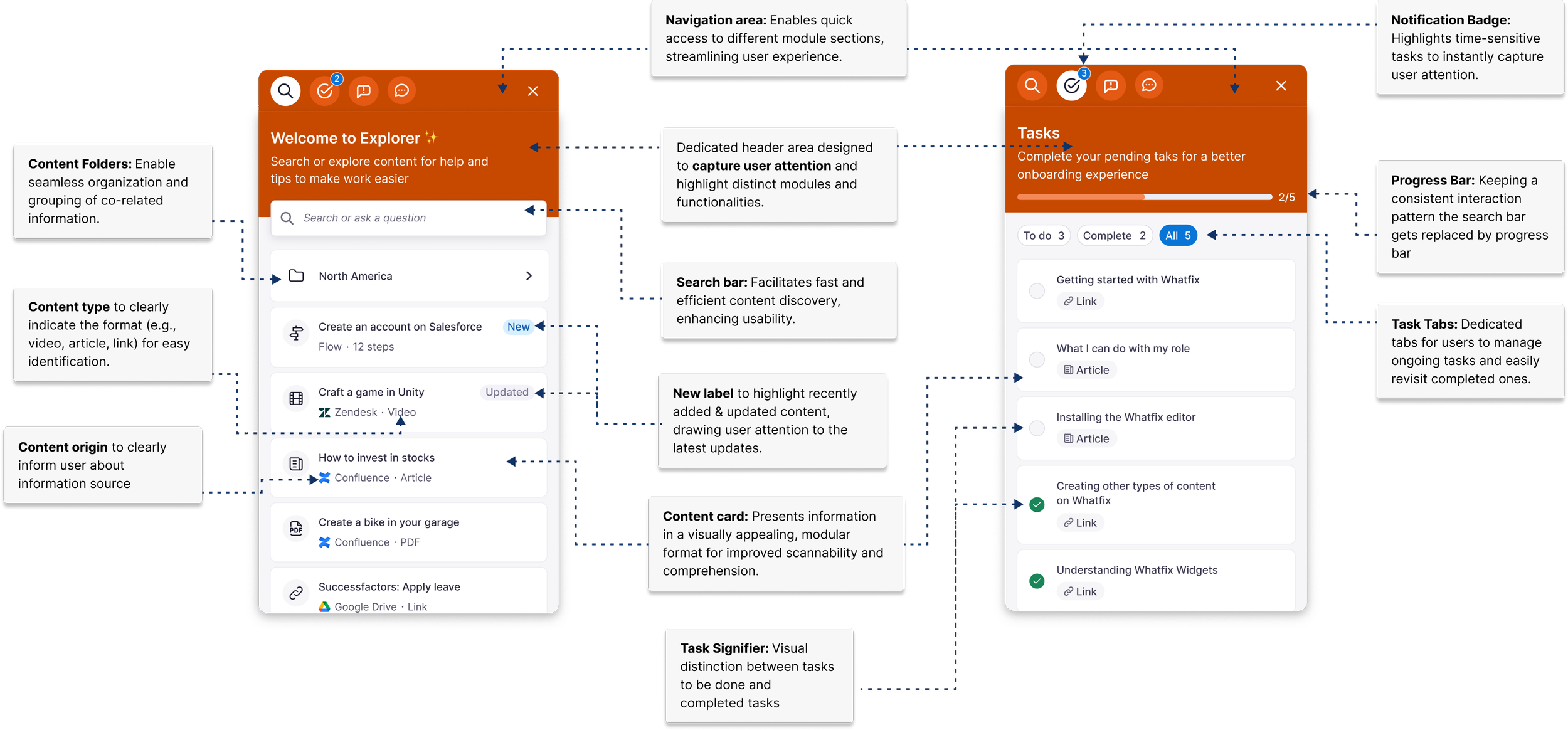 Stakeholders were protective of their application space. "We don't want another Whatfix icon in production." The widgets needed to feel embedded, not appended.