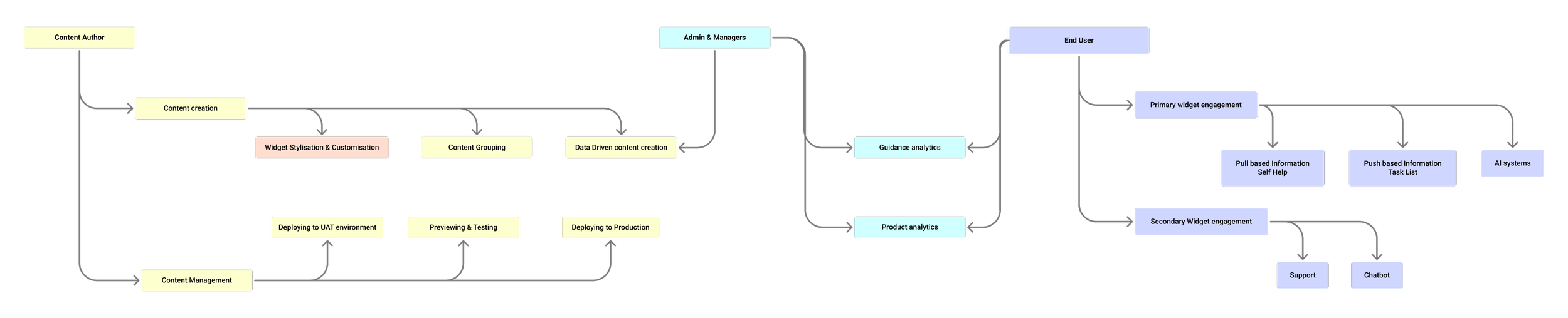 Self Help and Tasklist were meant to drive adoption. Instead, they were adding friction. End users couldn't find contextual help. Admins couldn't prove ROI. Authors couldn't customize without raising a support ticket. By Q4 2024, open rates had fallen to 20.8% even among high-performing enterprise accounts. The signals were clear.- value of the platform became harder to realize and the ecosystem had failed.